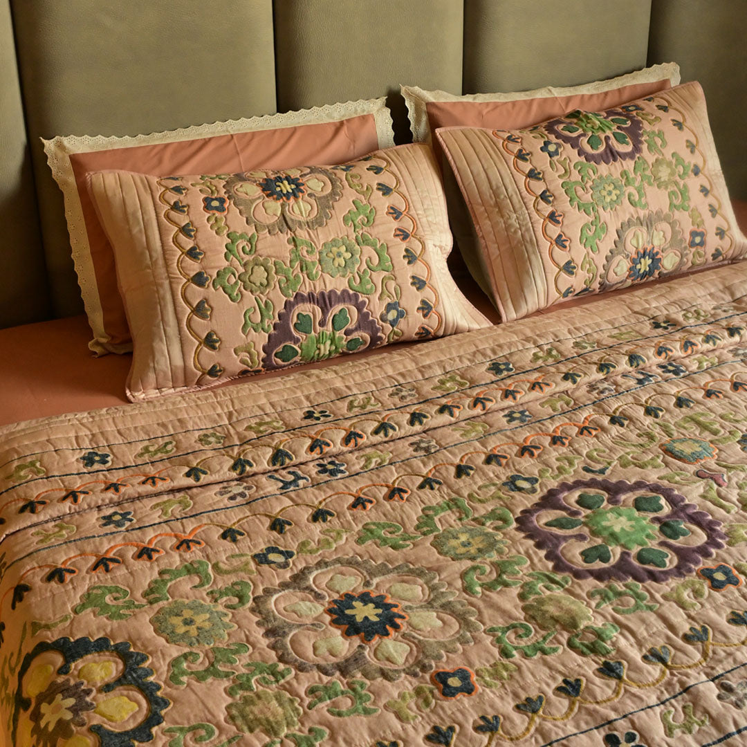 Warm, intricate, and gracefully composed, Blush Heirloom is a bedspread set that blends ornamentation with softness.